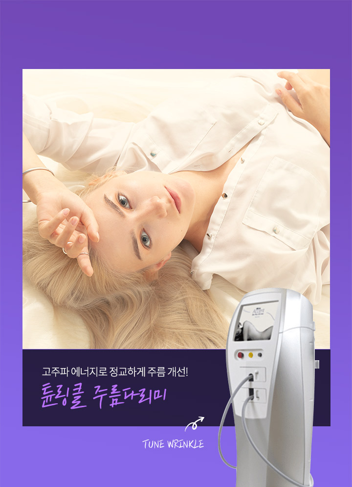 튠아이즈는 고주파 에너지를 이용하여 주름을 치료하는 주름 전용 레이저입니다.